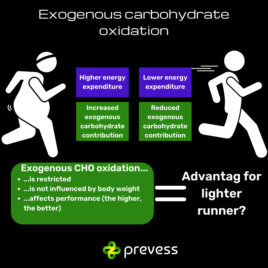 A significant percentage of endurance athletes, approximately 15-20%, experience chronic gastrointestinal (GI) issues during prolonged exercise. For these athletes, consuming larger quantities of carbohydrates may present challenges or be impractical. However, the oxidation of exogenous carbohydrates remains unaffected by body weight.
